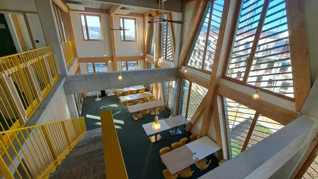 A commencer par l’immeuble « GINA » (5 500 m²) inauguré en 2025 et dédié aux entreprises innovantes dans la santé de demain. Cet hôtel d’entreprises propose des bureaux aménagés de 10 à 800 m², des loyers adaptés aux start-up comme aux ETI, et des services mutualisés : salles de réunion, showroom, studio d’enregistrement, espace événementiel, lieux de convivialité. Environ 40 entreprises et 350 collaborateurs y sont installés.
